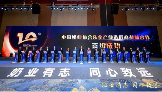 為了進(jìn)一步凝聚行業(yè)力量,強(qiáng)化行業(yè)準(zhǔn)則,明確企業(yè)擔(dān)當(dāng),促進(jìn)廣泛交流與合作,共同塑造中國奶業(yè)健康、安全、可持續(xù)的行業(yè)形象,滿足人民日益增長的美好生活需求,展商代表與中國奶業(yè)協(xié)會(huì)代表共同登臺(tái),正式發(fā)布《中國奶業(yè)展覽會(huì)展商宣言》。這一莊嚴(yán)時(shí)刻不僅彰顯了奶業(yè)界的強(qiáng)大凝聚力,更激勵(lì)著全行業(yè)同仁攜手并進(jìn),為實(shí)現(xiàn)奶業(yè)強(qiáng)國的宏偉目標(biāo)奮勇前行。大家紛紛表示,將以更加飽滿的熱情和務(wù)實(shí)的行動(dòng),切實(shí)履行宣言中的每一項(xiàng)承諾,共同書寫中國奶業(yè)更加輝煌燦爛的明天。